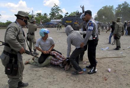 Apartheid in West Papua. Civilians are led away like slaves after being detained following a peaceful meeting. October 2011